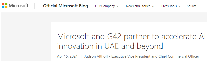 史密斯还在接受采访时透露,微软在这一过程中得到了美国政府的大力鼓励。“这反映出美国政府认识到两国关系的重要性,以及继续鼓励像G42和微软这样负责任的公司走在前沿的重要性,不仅是技术本身,而且是世界领先的安全和负责任的人工智能标准。”