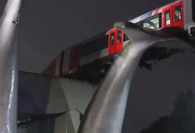 真·有鲸无险!荷兰轻轨冲出轨道被鲸鱼雕像接住上热搜