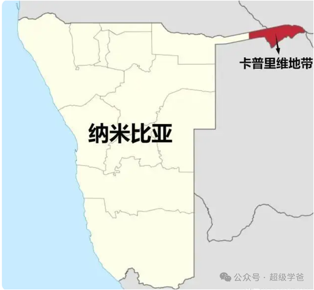 非洲的纳米比亚,地图很奇怪吧,向右伸出一根细长条,直插非洲内陆深处。这根长达450公里的细长条,叫做卡普里维地带。这畸形的划界,就是大国瓜分非洲的“杰作”。