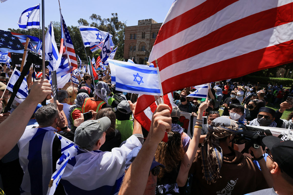 据加州大学洛杉矶分校早些时候的一份声明称,校方允许两派团体在校园内表达自己的观点,而该校校园内的激烈示威活动还涉及一些“校外人士”。