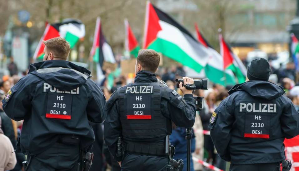 德国法兰克福“挺巴”游行示威,德国警方保持警戒/CNN