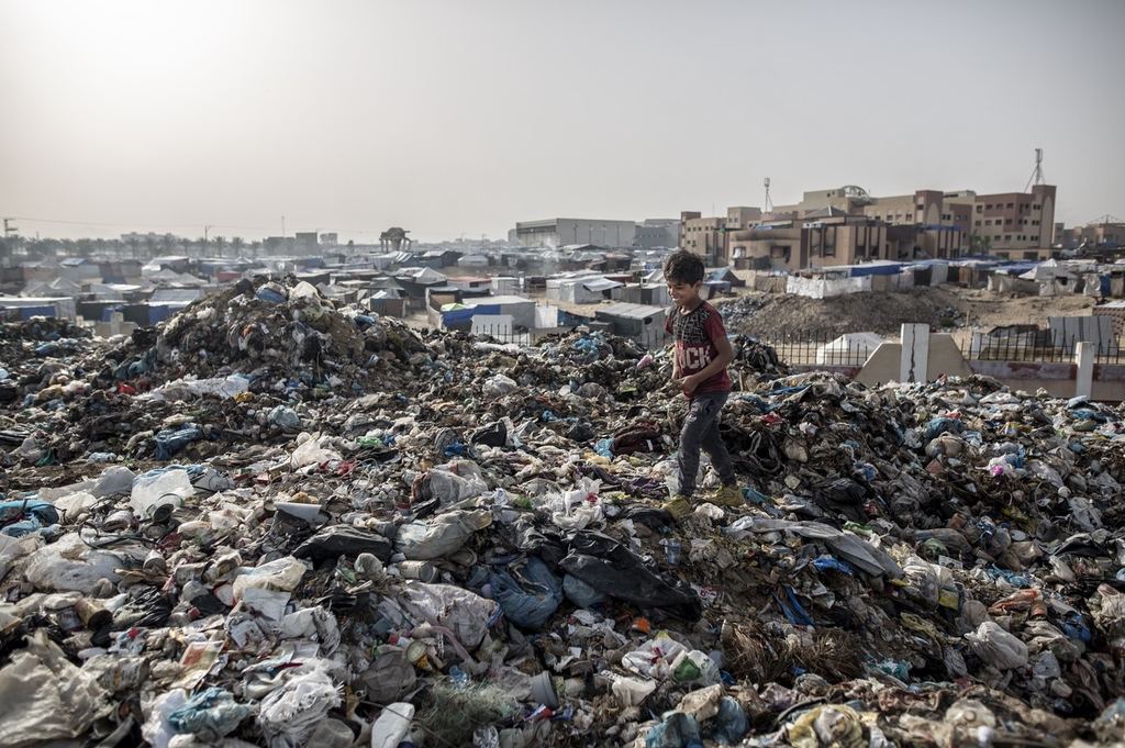 2024年5月20日,加沙地带汗尤尼斯,巴以冲突持续,加沙地带燃料短缺,巴勒斯坦人在垃圾堆内寻找木材、纸张等可燃物/IC Photo