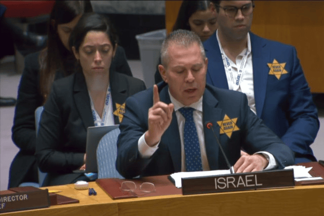比如以色列驻联合国代表就天天给自己戴黄星,强调犹太人被纳粹德国屠杀的历史