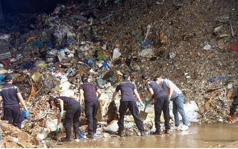 警方在垃圾回收厂搜寻死者碎尸