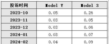 由以上图表可以看出:特斯拉在2023年10月至2024年03月这半年时间里,被投诉的量非常之低,最高也只是2023年12月达到30个投诉量,还是Model 3和Model Y两种车系合计的值。甚至在2024年01月,Model 3和Model Y两种车系的投诉量均为个位数,实在厉害!