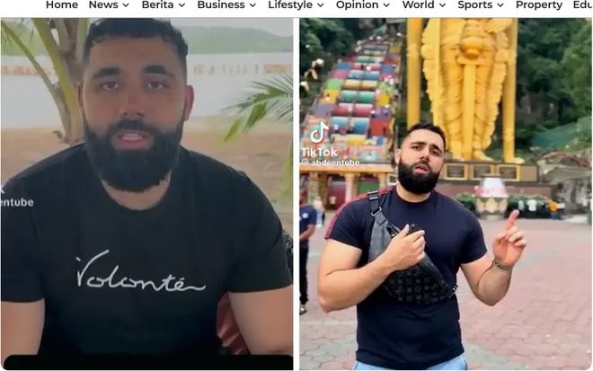 一名网红到马来西亚旅游时,跑到一处观光与印度教圣地诵读古兰经经文,引发「不尊重当地宗教文化」争议。