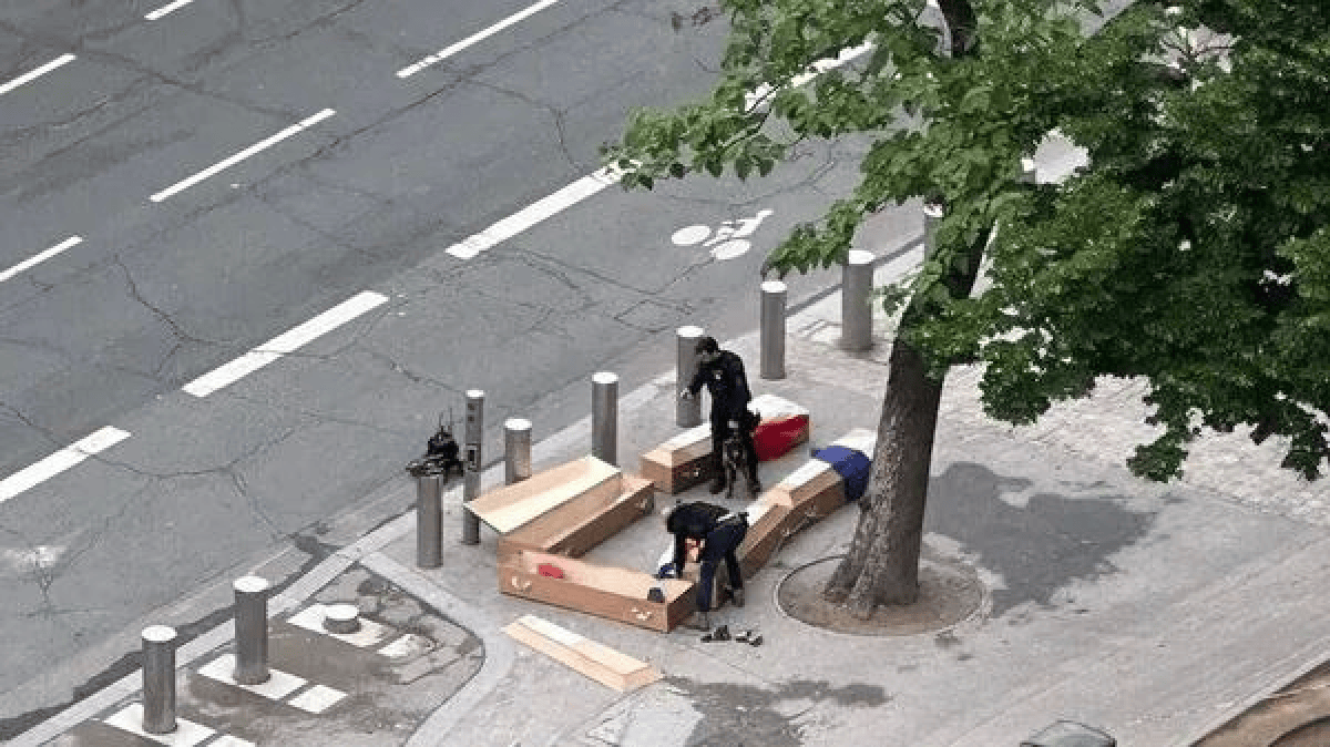 根据监控摄像头显示,6月1日上午9点左右,一辆挂着保加利亚车牌的白色面包车停在埃菲尔铁塔附近,两名男子从车上卸下棺材。