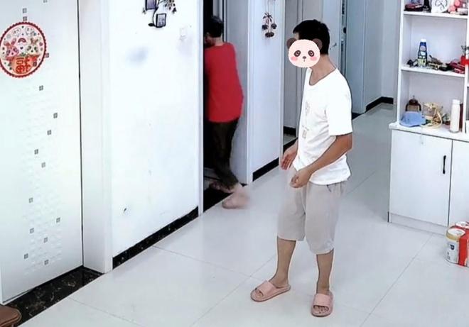 本来还强装镇定的妻子终于绷不住了,从丈夫怀里跳下来,一跺脚,捂着脸就跑回了卧室,还把门给关了起来。
