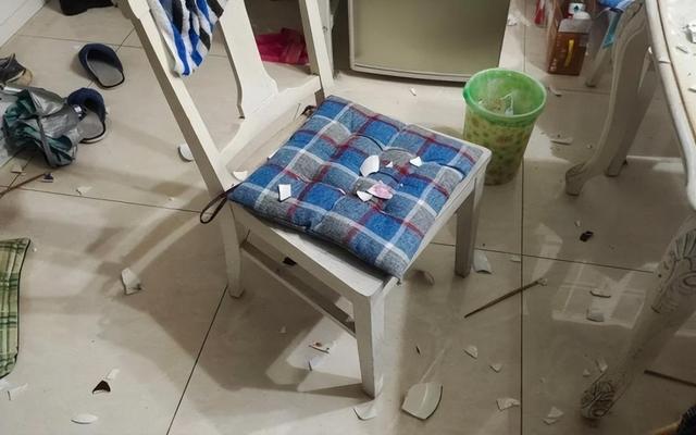 推开门后,只见不大的家中满是残破的碗碟,卫生间中到处沾染着血迹,就连放置在客厅中的坚硬茶几的四角都碎裂开来。