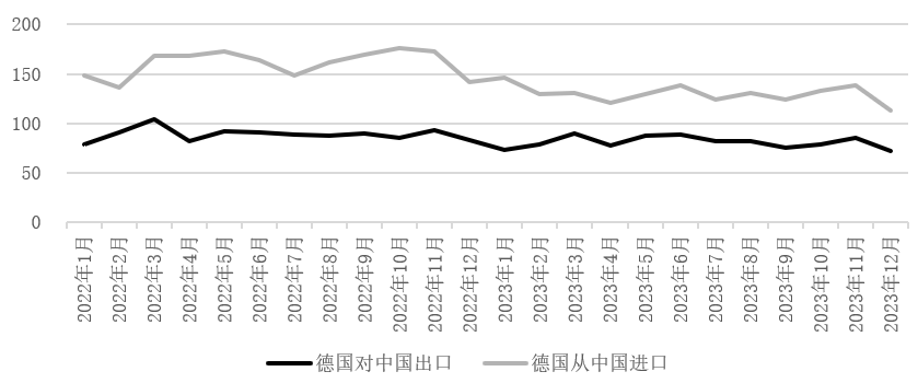 中德贸易额(按月,单位:亿欧元) 图片来源:作者供图