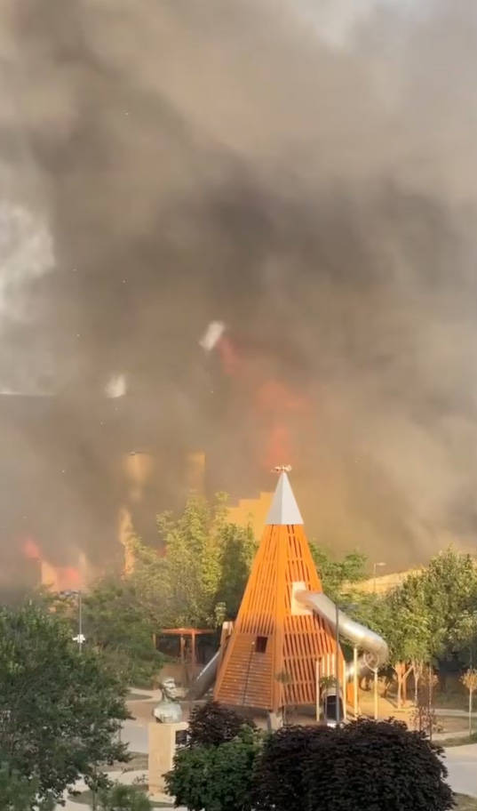 俄罗斯达吉斯坦共和国杰尔宾特,袭击发生后升起的浓烟(视频截图)