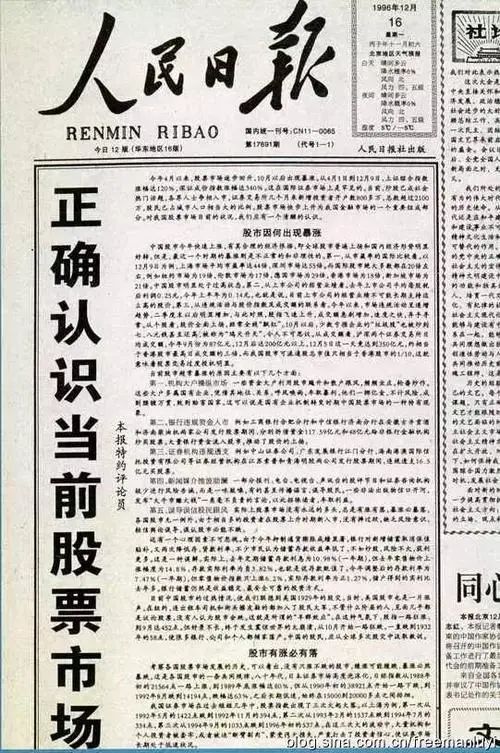 作者:人神共奋 重读《正确认识当前股票市场》 《正确认识当前股票市场》 1996年5月的一天中午,我请了事假去证券公司办了一个股东账户,成为新鲜出产的“韭菜”。 这事儿是要瞒着单位的,我当时在银行,明文规定不允许炒股,大部分体制内单位都有此规定。 上个世纪九十年代,炒股票在大部分中国人看来,并不像《繁花》里表现的那么高大上,仍然是不务正业的象征。赚了钱,没兴趣工作,亏了钱,没心情工作。 还没等我把股票都弄明白,就迎来了下半年的疯涨和年底十二金牌打压股市。 事隔28年,我仍然清楚记得那篇破天荒地上了人民日报的头版头条的评论员文章(谢谢还没有上升到社论的级别)的标题——《正确认识当前股票市场》。 这个文章在现在看来,可以看成其后20多年防范股市风险的纲领性文章,它把1996年股市暴涨的原因总结为五条: 1、机构大户操纵市场 2、银行违规资金入市 3、证券机构违规透支 4、新闻媒介推波助澜 5、误导误信股民跟风 总之,基本面的原因基本没有,除了“银行违规资金入市”之外,其余四条“罪状”仍然是现在监管的重点。 这篇文章的核心思想是“股市有涨必有落”,所以要“进一步抑制过度投机”。摘录其中的几句话: 考察各国股票市场发展的历史,可以看出,没有只涨不跌的股市,缓涨可能缓跌,暴涨必然暴跌,这是各国股市的一条共同规律…… 暴涨之所以会导致暴跌,是客观经济规律决定的。价格决定于价值,价格严重背离价值的情况只会是暂时的、短期的和有条件的,而不可能是长期的、永久的和绝对的…… 本文为什么要扯这些陈年旧事呢? “股市有涨必有落”的思想,代表高层的看法,成了其后20多年证券监管的大方向,而且直接影响了投资者,以至于认为“美股年年上涨年年积累风险,A股永远3000点永远有价值”。 本文就简单地梳理一下这些监管思路的形成过程,再看看最近的一系列变化,是否代表着一个新的监管时代的到来? A股存在的意义是什么? 评论员文章发表后,股市直接两个跌停,很多人到营业部要求销户,认为高层已经否定股市了。人们的问题是,如果股市有这么大的风险,那么它存在的意义是什么? 1996年的评论员文章中,关于股市作用的,只有一句话“上市公司从1992年的53家发展到今年11月底的501家,为国有企业筹集资金和转换机制发挥了积极作用”。 全球绝大部分股市,开设之初的目的,都是为了方便股东进行股权转让,到了后来,股东看到手里的股权因为流通而产生了流动性溢价,产品因为企业知名度上升而更畅销,也纷纷让企业上市变成公众公司。 这一机制下,如果是牛市,估值上升,企业就更愿意上市,上市公司的供给增长,如果是熊市,估值下降,甚至跌破净值,企业就倾向于退市,或者被趁机收购,上市公司的供给减少,这就起到了市场自发调节的作用,也是股市长期慢牛向上的机制之一。 唯独A股创立和前十年的目的都为了“转换企业机制”和“国企融资”。 国有企业的现代股份制改造是“摸着石头过河”的重要组成部分,是写进十四大文件的顶层设计,所以对于具体监管部门和上市企业而言,最具现实意义的作用就是融资。这就导致了最初十年,上市公司的质量一般,特别是1998年国企“三年脱困”中,股市还被赋予了“帮助国企脱困”的职责,上了很多经营都困难的企业。 打个不恰当的比方,股市就相当于“三校”,上市公司都是考不上高中又不想初中毕业就打工的“三校生”,对于学校而言,除了学点基本生存技能外,就是不要出大乱子,男生不要弄出人命,女生不要搞出人命,维持秩序比学习更重要。 所以监管部门的重点工作就是两个,一是每年帮助各省完成上市指标,企业顺利融资,之后企业发展得怎么样,不是重点,也管不了,二是上市后的重点就是——“不出大的风险”。 这也形成了长期以来的两大监管目标: 1、股市主要是为了解决融资问题(主要收益) 2、股市要防止暴涨暴跌引发的风险事件(主要风险) 虽然2000年以后,随着一批大型头部企业的上市,特别是股权分置改革的实施,A股摆脱了“为国有企业筹集资金”的地位,但在官方的主流叙事中,对股市的态度仍然非常分裂: 虽然证券交易所是国家开的,但来场子里玩的股民都是“合法赌徒”;虽然股市为企业融资,但参与的股民都是想不劳而获的人;虽然股市的上涨反应了“国内经济形势明显好转”,但“最近一个时期的暴涨则是不正常的和非理性的”。 A股是全球主要股市中,上市审查最严格的,但对上市后的监管,比如信息披露、市场操纵、内幕交易等要求又没那么严格;监管部门对于企业业绩的长期发展基本不关心,但对股价暴涨又非常敏感。 “村长”号称国内最难当的官,历任都是“受命于危难之际,最终黯然离场”。 所以股市监管部门长期以来的重中之重,就是防止暴涨暴跌,但在实际监管中,防止暴涨比防止暴跌更重要、更前置——这也跟A股的另一个特点有关。 防炒作,防暴涨 一个经济长期高速发展的国家、居民财富迅速增长,风险偏好长期乐观,同时实行最严格的资本管制,难以投资海外股市,对股市的影响,必然是散户流动性长期过剩。 这种流动性环境,不但导致长期高估值,也很容易引发快牛行情。早期给高层留下了对股市的不多的几次印象,比如1993年的全民哄抢认购证,比如1996年的股市暴涨引发十二道金牌打压,每次上新闻联播,都是负