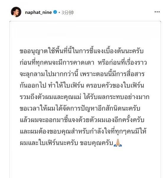 6月26日,小九发文回应和小水分手,文章大意为:给他一点时间来处理问题,后续会作出回应。不要乱传消息,以免给小水及其家庭造成伤害。