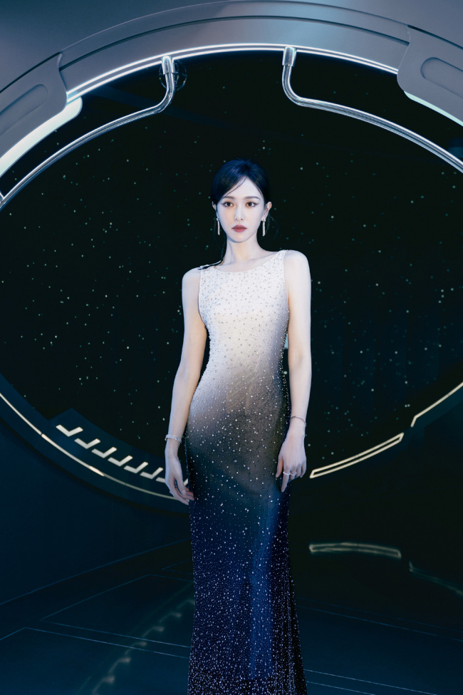 唐嫣身穿闪钻露背裙 科技十足化身银河女神