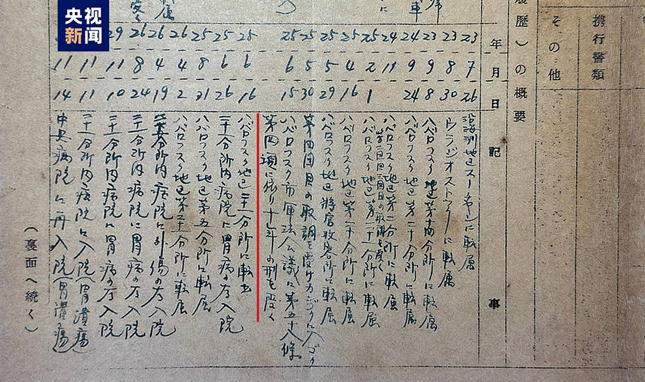 侵华日军第七三一部队罪证陈列馆研究人员 金士成:我们在整理身上申告书的过程中发现,除了久留岛佑司以外,还有9人也在伯力受到审判,被判处10—25年的有期徒刑。而值得注意的是,这些人的审判日期是1950年的4月到9月,也就是说1949年12月25日到30日伯力审判之后,苏联方面仍然对日本细菌战罪行进行调查和审判,这是我们以往研究中不曾发现、不曾注意的。