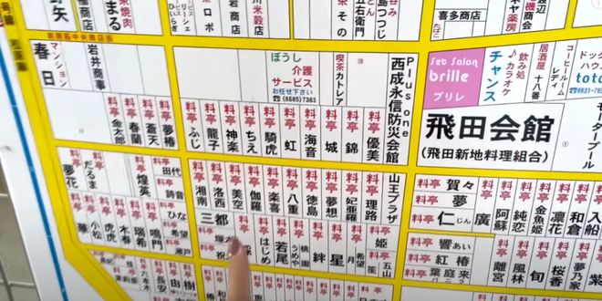 你看这张图上面全部都写着料亭,其实就是那种店,她们的逻辑就是这样的,大约有100间左右。