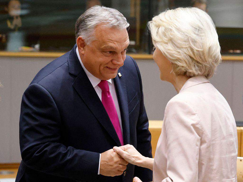 2023年10月,欧尔班与冯德莱恩在欧盟峰会前举行会谈。视觉中国