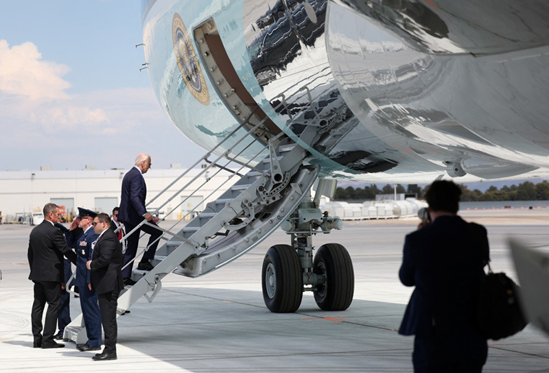 拜登在确诊新冠后步履蹒跚地登机 路透社