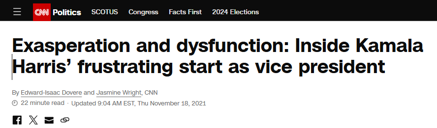 CNN:《愤怒和功能失调:卡玛拉·哈里斯作为副总统的令人沮丧的开端》