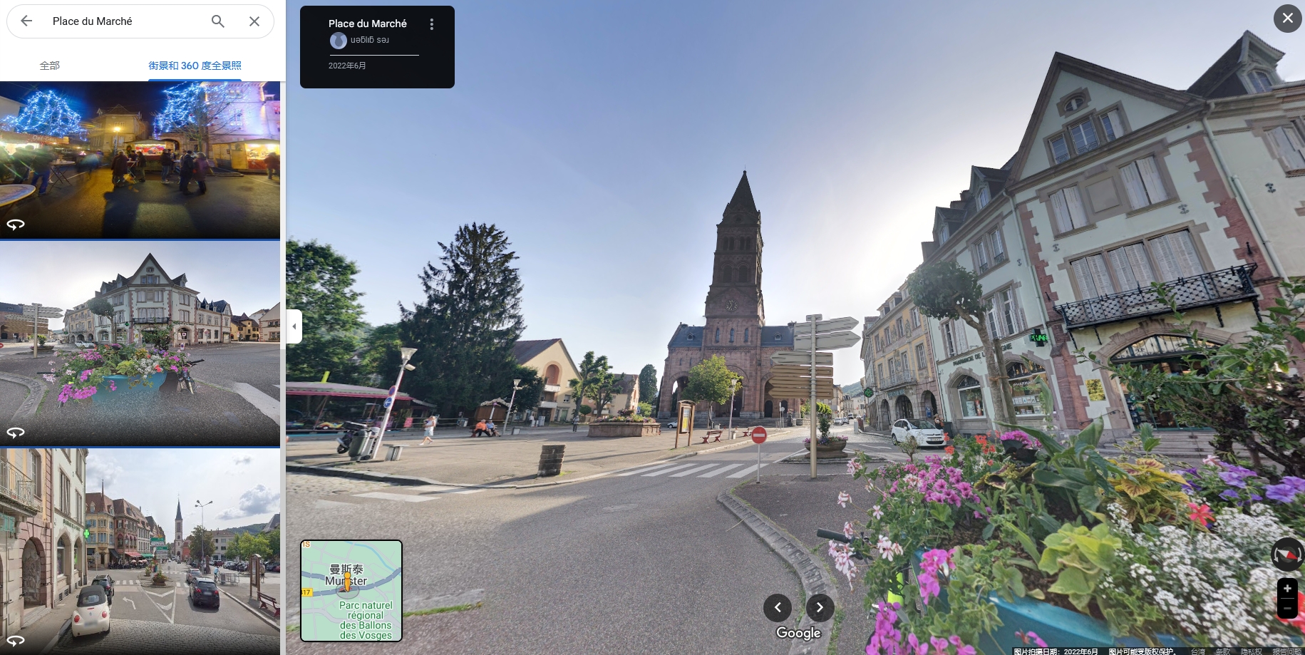 尽管有社交媒体账号称此事发生在法国巴黎,但从视频左上角的文字,并结合谷歌街景地图来看,基本可以确定这一画面来自法国曼斯泰(Munster)的一个集市广场。