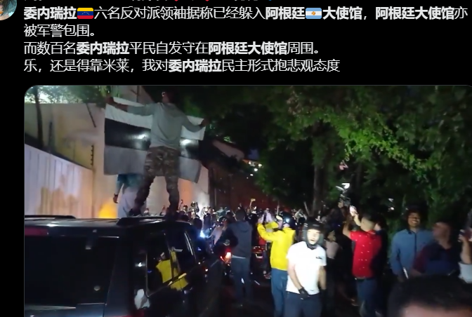 另外网上有不少视频显示,反对派领袖为了避免被害已经躲入阿根廷大使馆,他们将在阿根廷大使馆里继续发送证明马杜罗舞弊的证据