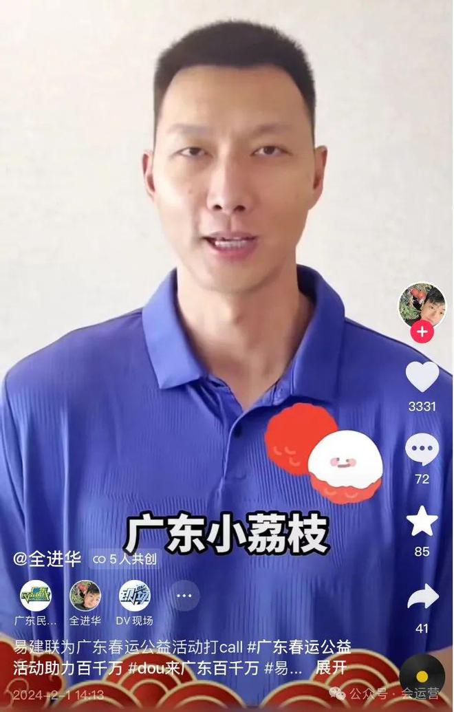 但是,我们也通过全进华的抖音账号看到,有的视频中有苏炳添、易建联的共创视频。如果不是他妹妹全红婵的原因,估计要和易建联和苏炳添共创会很难的,但是这类的视频也就2个。