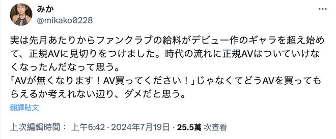 为什么?这口号没问题吧?因为不只事务所这么说,各片商也在社群上不断推送反盗版的广告,不难明白界的大家有多焦虑;不过みか的看法却是完全不同,她在X上这么写着: