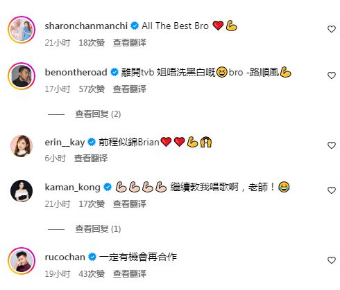 不少艺人朋友如龚嘉欣、姚子羚、陈欣茵纷纷留言祝福!