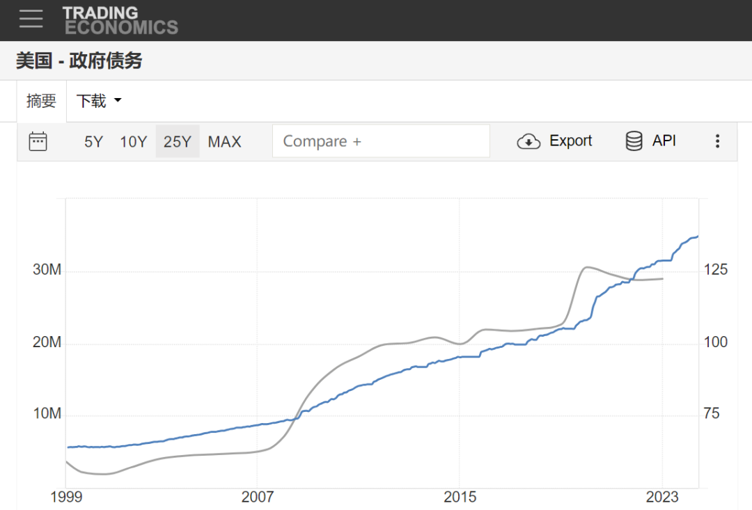 7月26日,美国的国债突破35万亿美元。本年度内突破36万亿已经是可以清楚预见的事情。