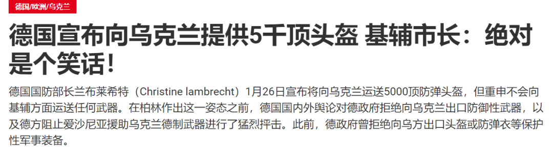 要知道德国一开始是连头盔都不愿意给乌克兰送过去的,而送头盔给乌克兰后,乌克兰人就讥讽德国说,下一步是不是要送避孕套了?防止乌克兰人被毛子强奸后得性病是不是?