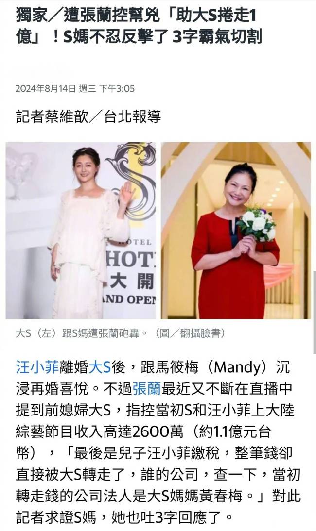S妈霸气回应张兰炮轰大S骗婚:不认识