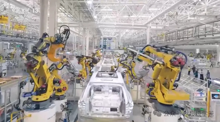 其中使用了大量的工业机器人和自动化设备。比如涂装车间,在全国首先使用七轴机械臂,每小时可完成30辆车的喷涂作业。与六轴机械臂相比,七轴机械臂更加灵活。