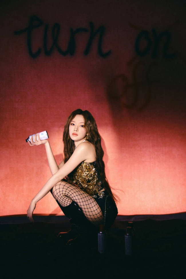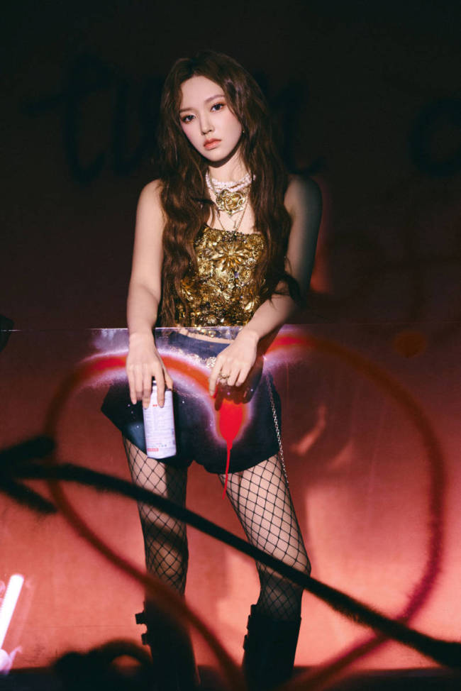 程潇在社交平台上晒出一组舞台造型写真,她身穿金色吊带上衣,搭配黑丝渔网袜和超短热裤,十分性感妩媚!