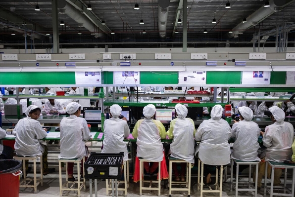 印度北方邦诺伊达的一家工厂内,流水线上的工人们正在组装电子产品。南华早报
