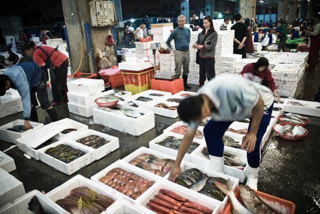 鱼贩触摸鱼类,用的是温柔不伤鱼体的方式。指尖测量油度,抓取触碰用以测试鱼僵直与鲜度。鱼贩留起指甲,才不是用来摸鱼的。
