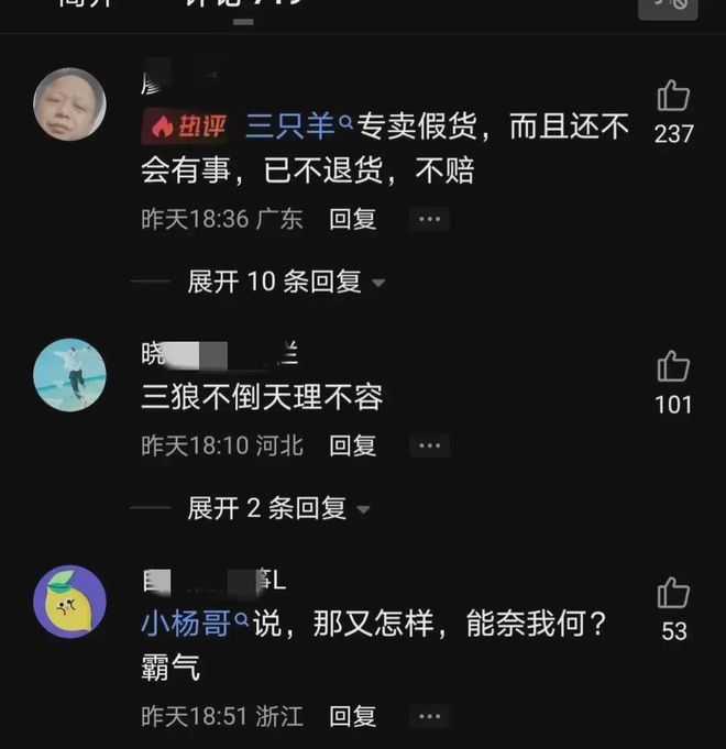 小杨哥这边更是让消费者失望。他的直播间关闭,整个人像是人间蒸发了一般,不再回应任何质疑。消费者不仅无法退货,连要找人理论的机会都没有了。