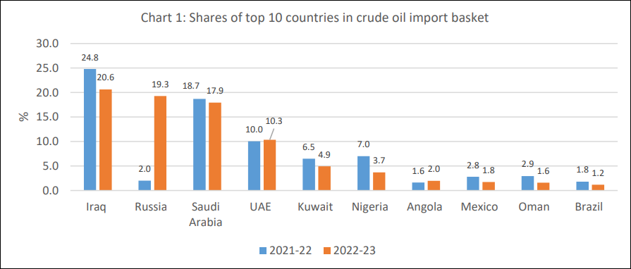 过去两年印度从各国进口原油占比统计图 图自巴罗达银行