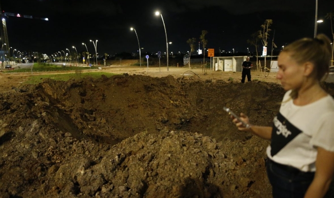 以色列发射拦截导弹,民众紧急就地避难,特拉维夫附近出现弹坑 外媒