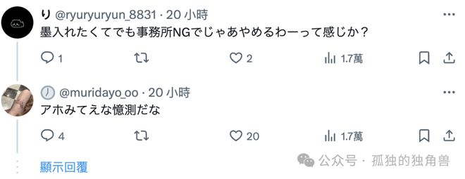 她的头像是个大腿上的刺青,而这个人是前阵子状况很多的「弓乃りむ(弓乃凛梦)」:大家都知道她是拍过写真偶像须田凛梦,先在SOD专属出道后引退了一阵子、复出后在另一家片商ダスッ!(DAS)继续担任专属女优但不久前突然疯狂刺青然后说要卖有22万追踪的X本帐,明显是又不玩了⋯