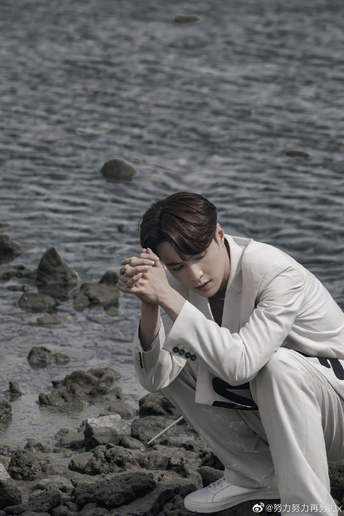 张艺兴晒九宫格写真感谢粉丝一身白色涂鸦西装青春活力