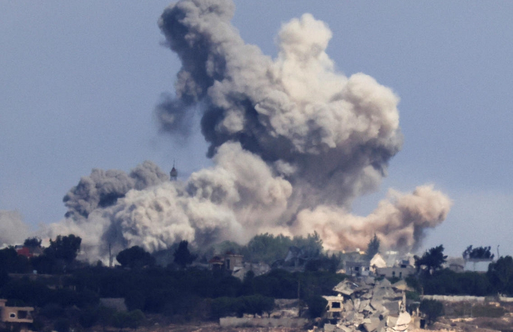 10月2日,以军继续在北部边境开展跨境袭击。图为以军轰炸黎巴嫩南部村庄后升起的浓烟。路透社