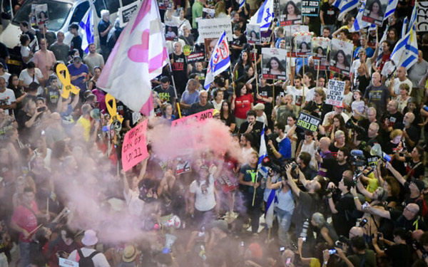 随着以军与黎巴嫩真主党冲突的加剧,受以军战时指令限制,与此前动辄数十万人的抗议规模相比,当天晚上抗议人数少得多。大约2000名抗议者聚集在特拉维夫基里亚军事基地门前。几个小时后,抗议者们封锁了附近的一条高速公路,并在街上点燃了篝火。