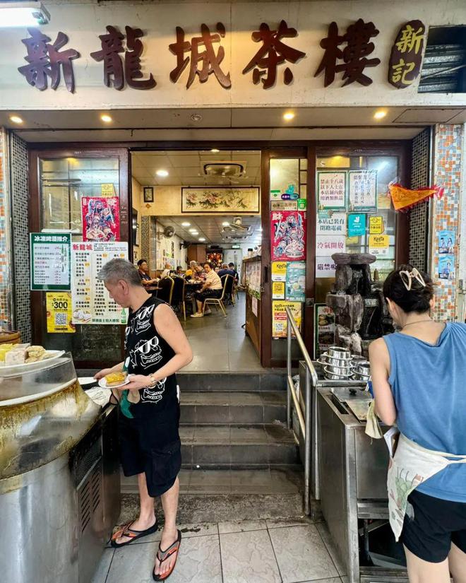 五十年代之前,很多传统茶楼只做早午市,战后不少酒家酒楼也开始兼营早茶,间接令很多茶楼因经营困难而相继结业。自1959年开业至今的新龙城茶楼,屹立于牛池湾村龙池径,是香港现时硕果仅存的寮屋茶楼,如今的负责人张生是茶楼第三任老板,已接手经营超过10年。茶楼的屋顶由铁皮搭起而成,划分成室内和露天两个区域,平日早上6时许,茶楼室内外的位置都已坐无虚席。有别于坊间酒楼常见以点心纸落单的形式,新龙城茶楼采自助形式取点心,点心车内叠起的蒸炉,摆放着热腾腾的烧腩卷、鸭脚扎和鹌鹑蛋烧卖等传统点心款式,供客人自行挑选,一旁热心的楼面侍应也总爱问茶客想吃什么,再帮忙捧着一大盆点心送至客人台面。
