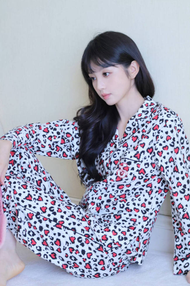 田曦薇穿豹纹睡衣化身清纯少女 大眼圆圆五官精致