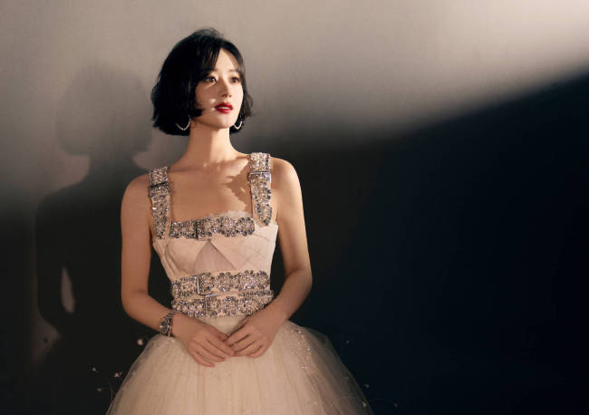 赵丽颖白裙短发造型浮光若絮 端庄典雅质感好高级