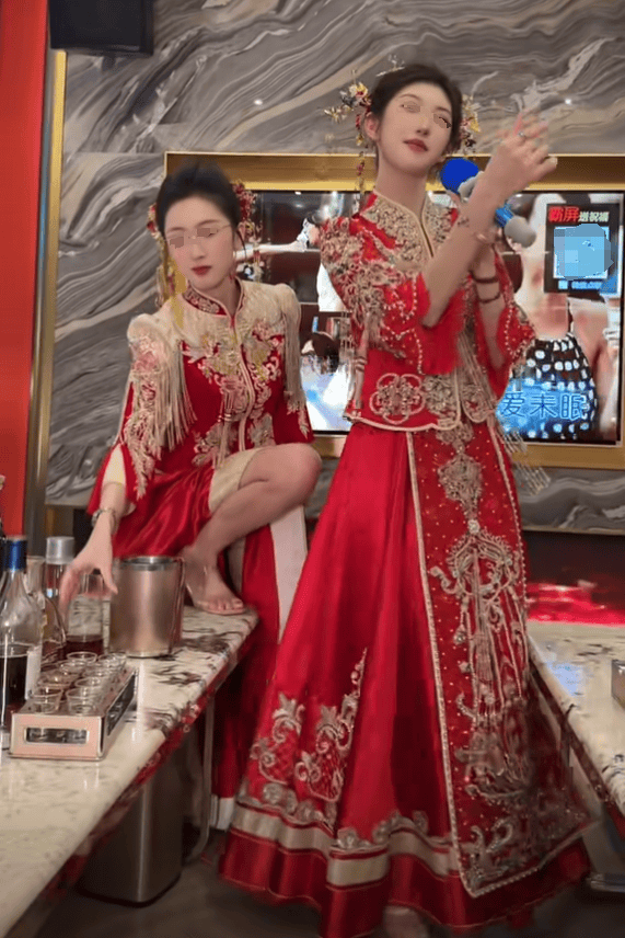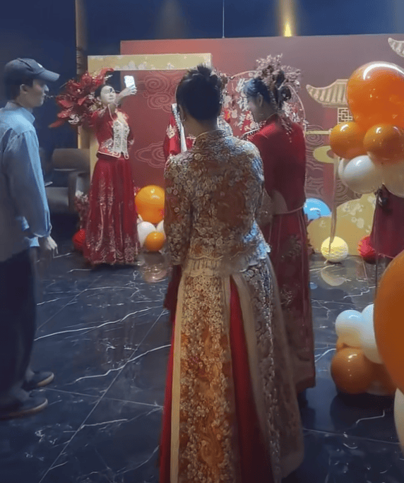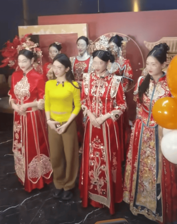 从拍摄的视频中不难看出,这些所谓的技师,每个人都穿着一件不同款式的红色新娘服,加上精心装扮好的发型和妆容,若是说这里有人在办集体婚礼,恐怕也会有人相信。