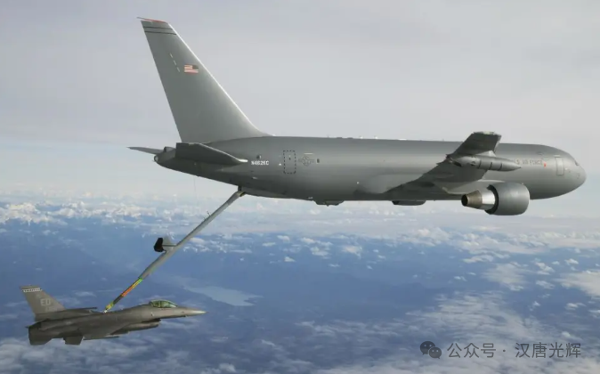 KC-46加油机是波音公司生产,2015年首次试飞,2019年进入美军服役。KC-46最大时速为每小时914公里,最大航程为1.22万公里,最多可携带94.20吨用于空中加油的燃油。