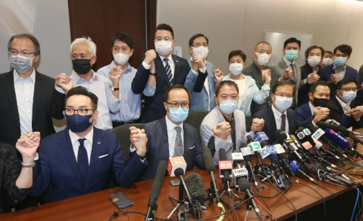 当天下午,香港反对派议员开始了大反击,共计15名议员出手,可谓的倾巢而出。这群反对派议员们宣布,因为4名反对派议员被取消了资格,所以他们要“总辞”,和这4人共进退。吓死人了,如果中央不收回成命,这15名反对派议员要辞职了,一下子就有19名反对派议员离开了立法会。