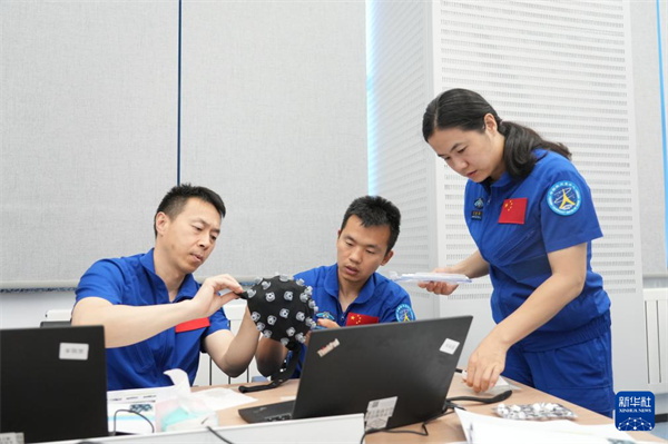 神舟十九号航天员乘组进行核心舱操作训练(2024年6月17日摄)。新华社发(徐部摄)