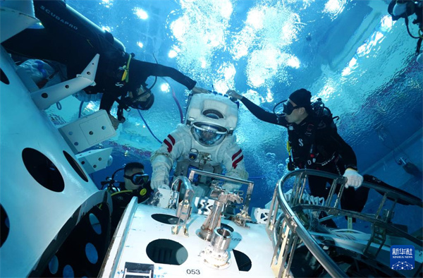 神舟十九号航天员蔡旭哲进行水下训练(2024年9月4日摄)。新华社发(孔方舟摄)